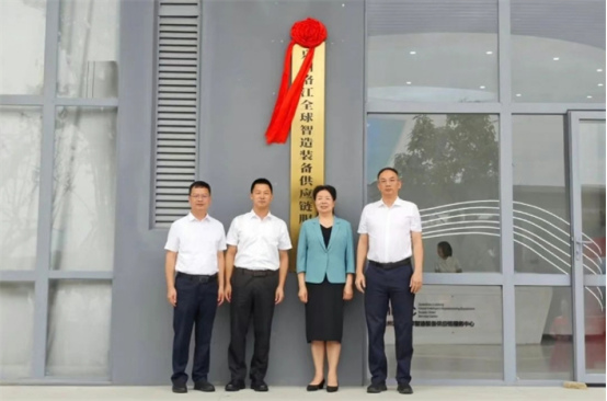 现场,颜丽明、郭宁、苏凯乐、林文荣共同为泉州洛江全球智造装备供应链服务中心揭牌。