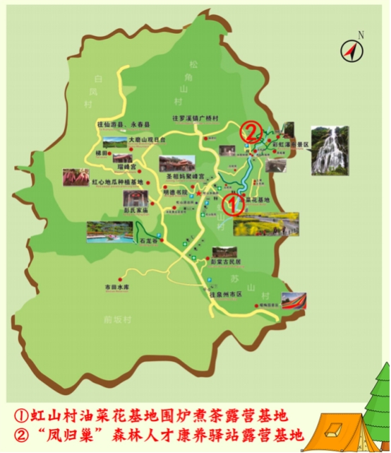 近年来,虹山乡深入挖掘“彭祖养生”“圣祖妈信俗”等文化元素,发挥“油菜花节”“红心地瓜”等品牌效应,建设樱梅园、石龙谷、虹桥飞渡三大景区,培育发展特色农业、康养度假、艺术文创等业态,打造“都市康养”高质量发展“梧凤小镇”。
