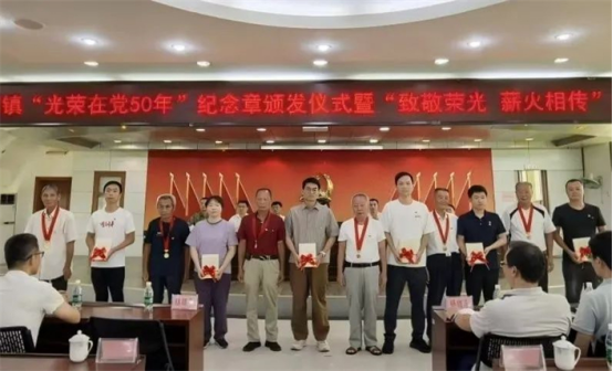 岁月染白了青丝,却从未改变信仰的颜色;时光刻下了皱纹,却始终坚守忠诚的誓言。河市镇领导为6名“光荣在党50年”的老党员代表颁发纪念章。老党员代表杨国亮、刘其云分享入党初心和奋斗历程,激励全体党员坚守初心,传承党的优良传统。