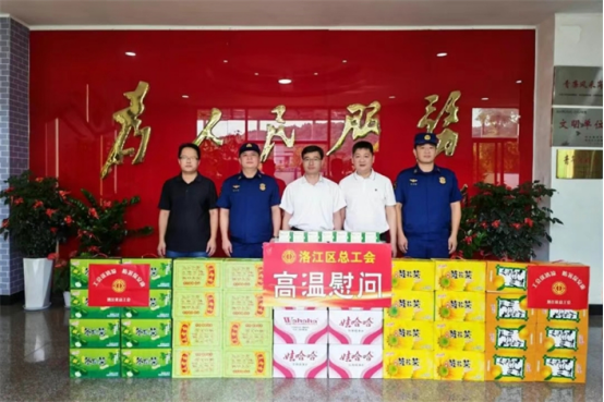 慰问组先后前往武警机动中队、洛江区消防救援大队、洛江交警大队、洛江公安分局、泉州高速公路支队一大队以及省市重点项目等地,走访慰问户外执勤民警、消防员、交警、建筑工人、环卫工人等高温工作者,对他们不惧高温、忠诚履职的工作热情和辛勤付出表示衷心感谢,叮嘱他们加强自身安全防护,注意防暑降温,并送上藿香正气水、凉茶等慰问品。