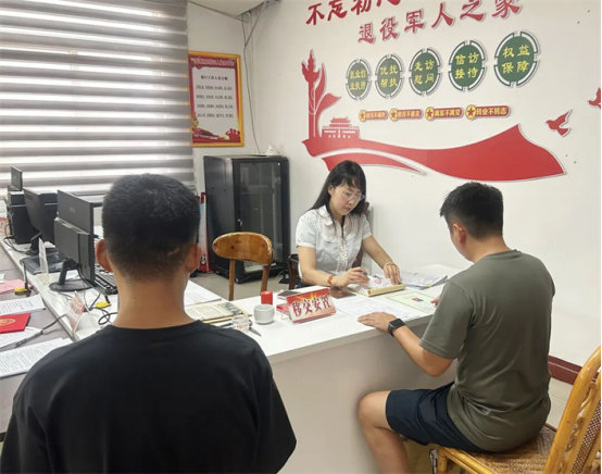 在洛江区退役军人服务中心,设立了“退役士兵返乡报到处”,工作人员和志愿者们热情地为返乡退役士兵提供政策咨询、信息登记、就业意向摸底等“一站式”的贴心服务,发放《退役士兵报到流程指南》《就业创业政策汇编》等资料,耐心解答他们关于预备役登记、社保接续、职业技能培训等方面的疑问,实现“落地即接待”,确保返乡报到无缝衔接。