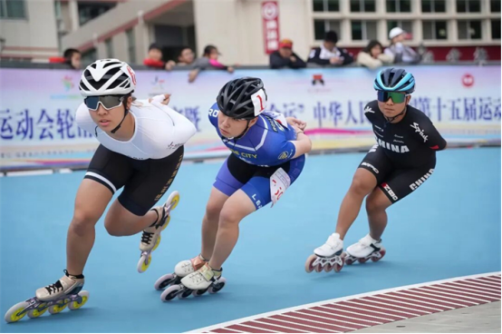 图为:罗溪镇奕聪中学承办的省级轮滑赛事活动现场