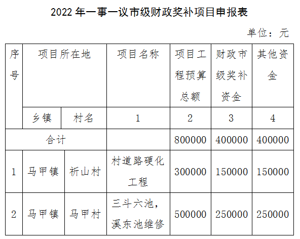 根据泉州市财政局《关于下达2022年村级公益事业建设一事一议市级财政奖补资金的通知》(泉财指标﹝2022﹞728号)、《关于同意洛江区2022年村级公益事业建设一事一议市级财政奖补项目的函》(泉洛财函﹝2022﹞46号),现将2022年一事一议市级财政奖补资金拟分配情况进行公告公示。