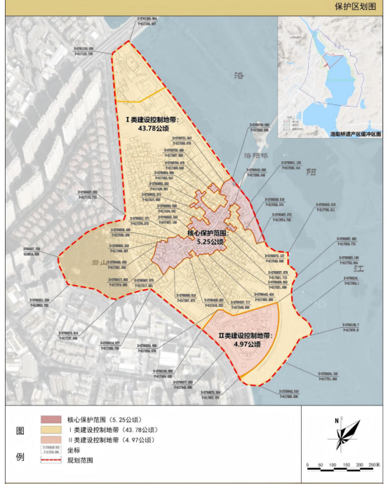 (1)Ⅰ类建设控制地带具体范围为:东以洛阳江岸线为界,南以桥南花苑居住区为界(不包含桥南花苑居住区),西以洛滨路并包含岩山为界,北以城华北路为界,总面积约43.78公顷;