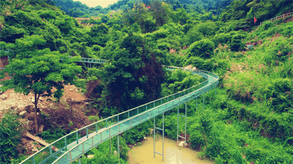 位于罗溪镇,景区集漂流、水上拓展运动、登山观日宿营、康养休闲度假为一体。现有河道漂流、高空挑战桥、丛林穿越等体验项目,更有小黄果树瀑布、风动石、龙潭古桥、古榕树、疆理肇端交界宫、圆通寺等景观。后期将打造成为“绿水青山环古迹、林深听潺有人家”的康养休闲度假小镇。
