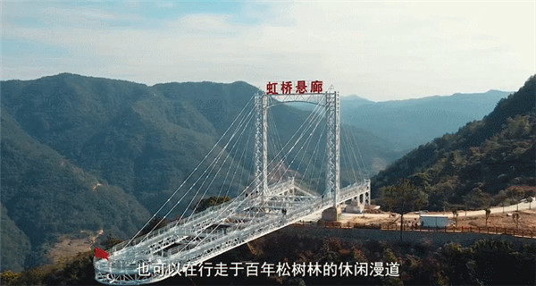 虹桥飞瀑是集避暑、康养、休闲、亲子体验为一体的新型旅游胜地。景区内有落差108米的彩虹瀑布;有树龄300年、多人方可合抱的苍劲挺拔的古松树、古樟树;有立于清道光甲辰年的虹山水尾护林碑和明代史学家何乔远的真迹崖刻等古迹;配套有超吉尼斯记录8.4米的虹桥悬廊和华东跨度最大的飞渡太空船等项目。