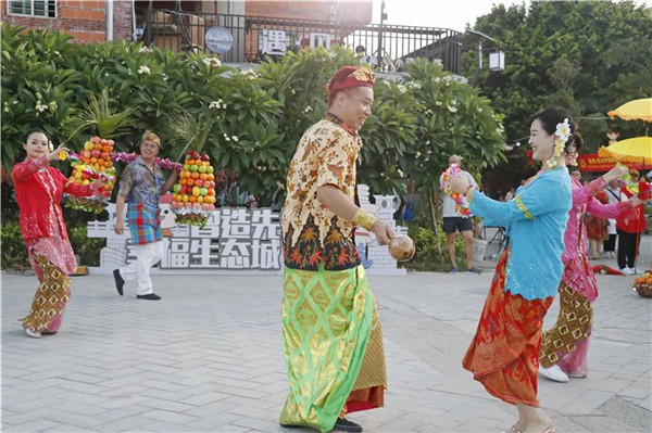演出既融合了陈三五娘传说、五祖拳、印尼舞蹈等非物质文化遗产内容,也唱响《蓝蓝泉州湾》《爱拼才会赢》等群众耳熟能详的歌曲,现场气氛热烈。