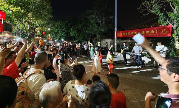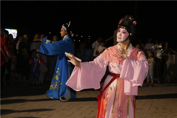 夜幕降临,悠扬婉转的南音在桥头响起。原来,这里正在开展陈三五娘(南音)专场沉浸式表演。国家级非遗项目陈三五娘传说是一个广泛流传于闽南文化圈的美丽传说,讲述了南宋末年,陈三和五娘大胆追爱、生死与共的爱情故事,被传为佳话。演员们用悠扬婉转的南音,演绎着这段美好的爱情神话。