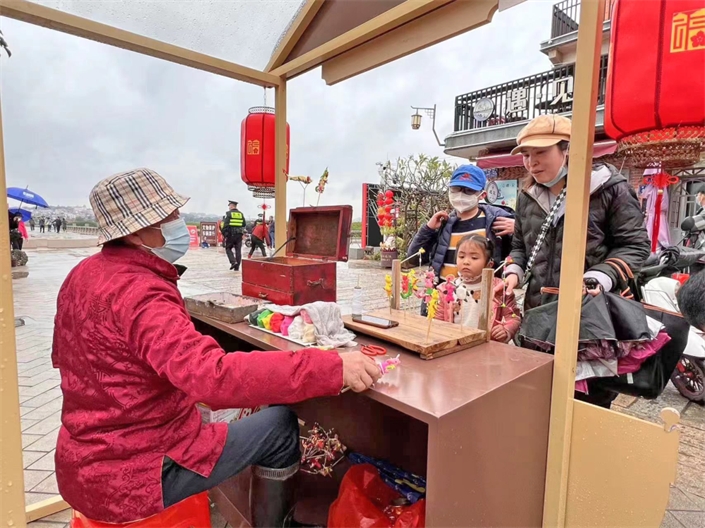 为营造浓厚节日氛围,2月5日,洛江区“玉兔迎福·春节元宵”文旅消费季暨“幸福圩日”活动在桥南古街举办,打造街头特色人文艺术景观,吸引众多市民游客参与。