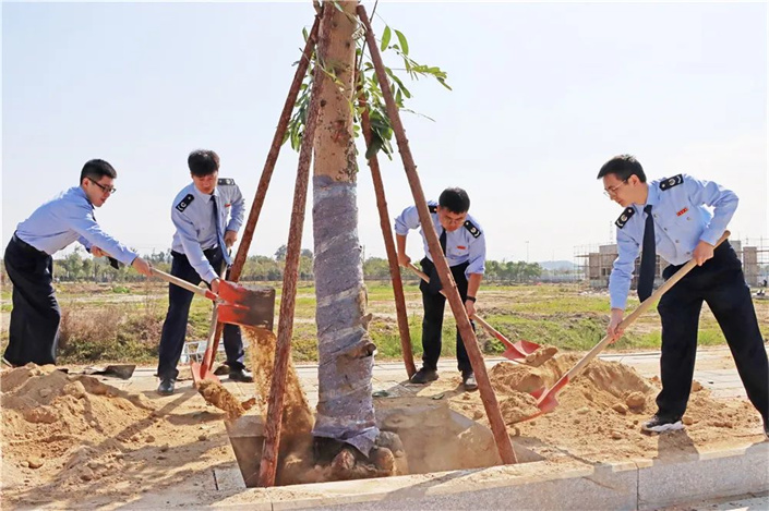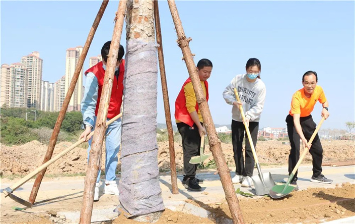 在洛江区阳江新城公园一期阳江大道路段,火热的植树氛围扑面而来,挥锹、铲土、栽树、填土、夯实、浇水……大家热情高涨、干劲十足,分工协作、相互配合,认真完成每一道工序,用自己的实际行动为建设绿色家园出一份力。