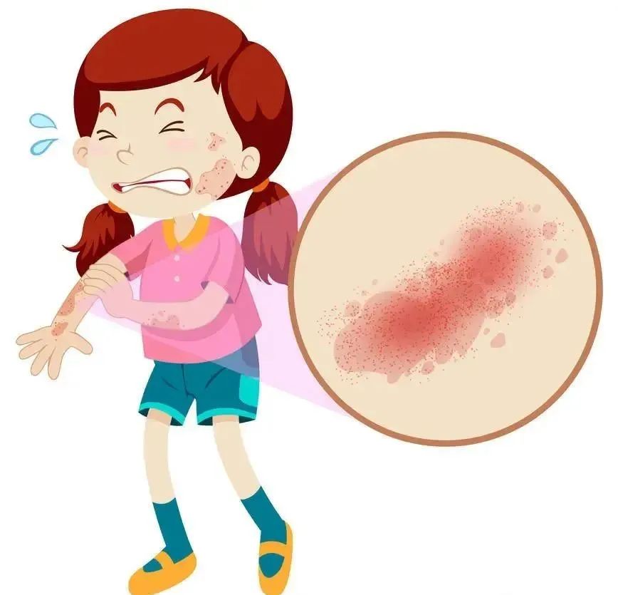 猩红热是由A组β链球菌感染导致的急性呼吸道传染病,人群普遍易感,多见于3岁以上儿童,5~15岁为高发年龄。主要通过呼吸道飞沫传播。患者感染后潜伏期1天~7天。大多数患儿表现为急性起病,畏寒、发热,重者体温可升到39℃~40℃,同时伴咽痛、头痛、食欲减退、恶心、呕吐、全身不适等症状。患儿发病24小时内出现皮疹,开始于耳后、颈部、上胸部,一日内可蔓延至全身。典型的皮疹为在皮肤充血的基础上有猩红色弥漫性小斑丘疹,皮肤压之变白,去压后数秒钟恢复充血。皮疹多1周内消退,1周末至第2周开始不同程度的脱皮,呈米糠样脱屑或大片的脱皮。