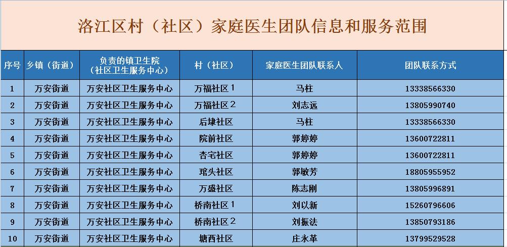 洛江公布村(社区)家庭医生团队信息和服务范围
