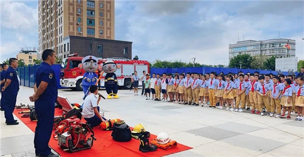 在福建泉州外国语学校洛江校区的操场上,洛江区消防救援大队与学校联合开展的消防安全漫画读本首发仪式暨“开学第一课学消防”活动正如火如荼地进行着。