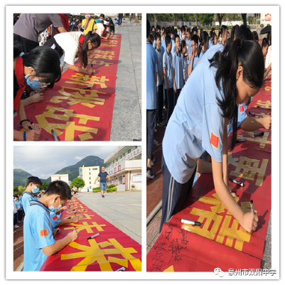 典礼上,学校党支部书记、校长杜更生对全体师生提出了要有理想有目标,要明责任知义务,要勇奋斗向未来三点期望。“请党放心,强国有我!”铿锵有力的声音在操场上空回荡,同学们在标语上签下自己的名字,表达对新学期的期待。