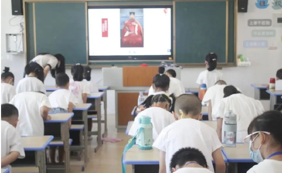 8月31日,区第三实验小学举行隆重的拜师礼和开笔礼。行拜师礼寓意学生尊敬、爱戴老师,同时也预示着自己会努力学习,不负师恩。教师为学生在额头上点上“聪明记”,寓意着孩子们从此眼明心明,喜读书、读好书。