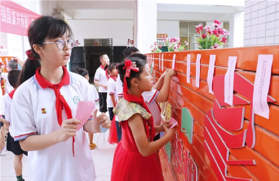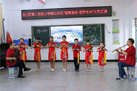 9月1日,区第二实验小学南山校区,“强国有我 逐梦未来”系列活动中,古筝演奏《我的祖国》、合唱《少年》、印尼舞《椰林欢歌》等节目轮番上演,红色教育灯谜、红色经典诵读、红色歌曲传唱、红色故事分享等环节意趣盎然,“强国复兴有我”的激昂旋律为新学期刚刚“苏醒”的校园增添了一份活力。