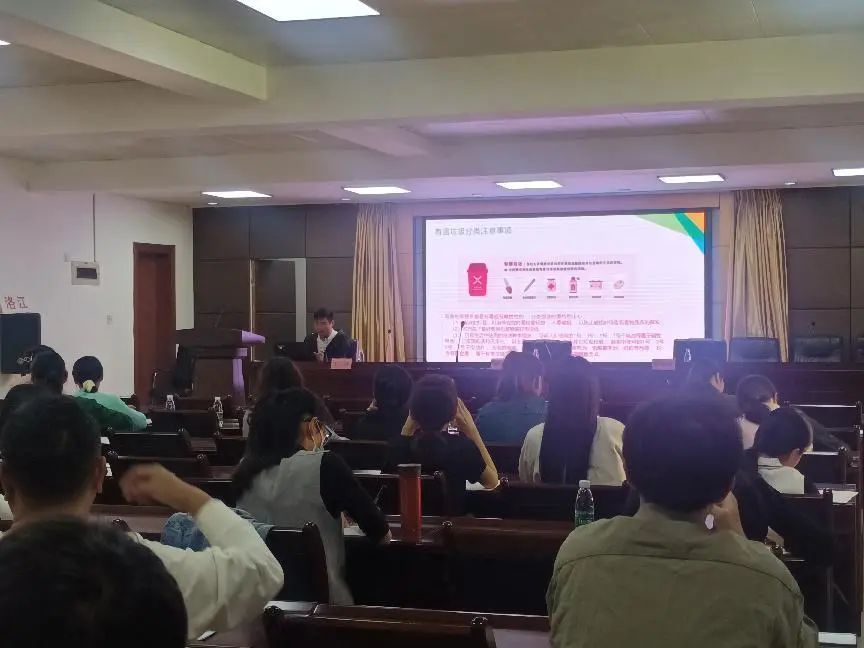培训会邀请了汇美环保王燚老师为参会人员作洛江区学校垃圾分类管理员垃圾分类技能知识培训。王燚老师从垃圾分类的优点、标准、处理体系、减量化措施等方面进行了详细解读。