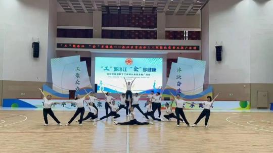 比赛中,洛江区教育工会代表队充分展现了教育工作者的风采。在规定套路环节,队员们动作整齐划一、规范到位,尽显团队默契。自选环节,啦啦操《青春就这样》成为全场亮点,队员们动感十足的舞步、富有创意的排舞,诠释了青春的魅力与活力。