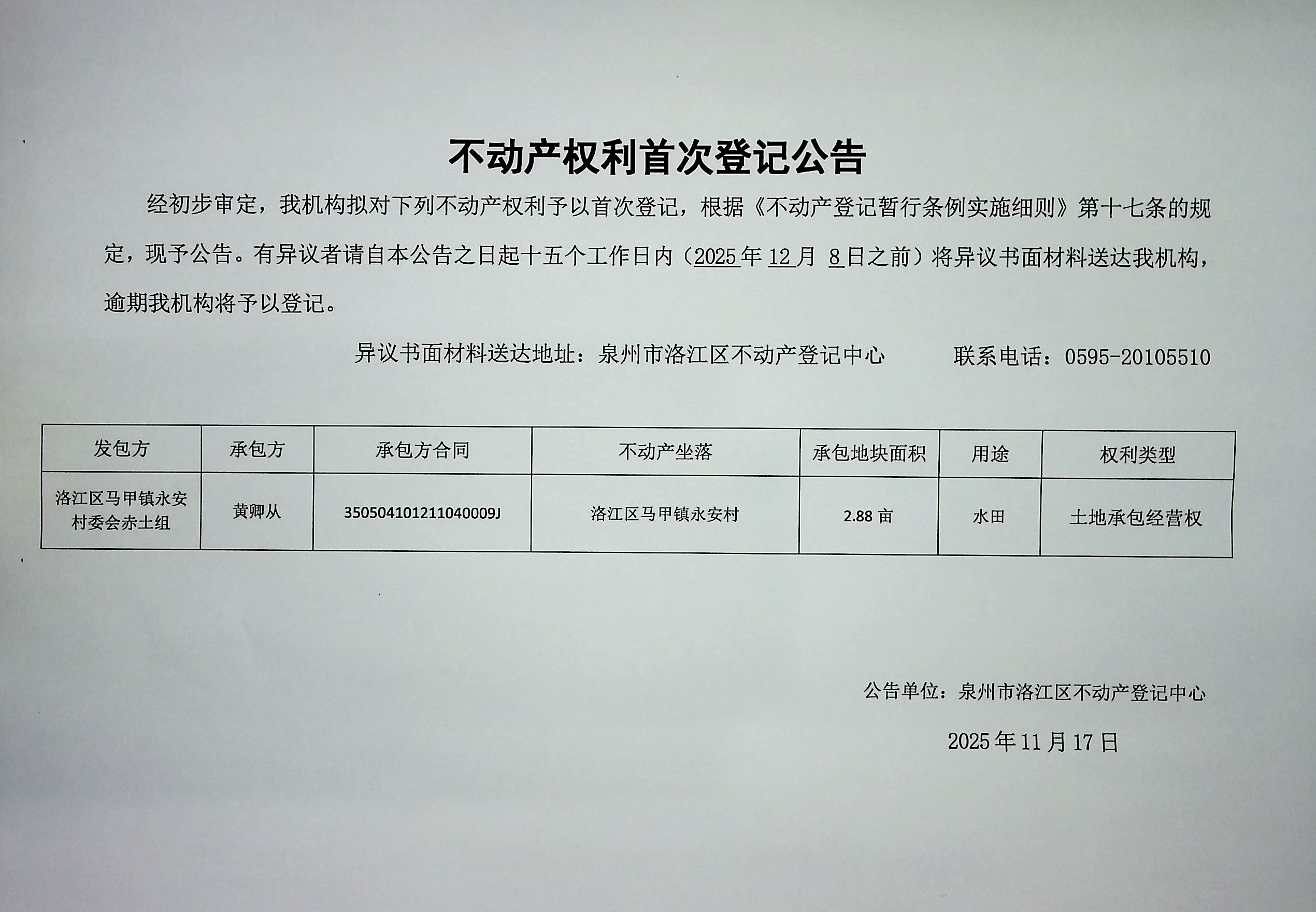 不动产权利首次登记公告