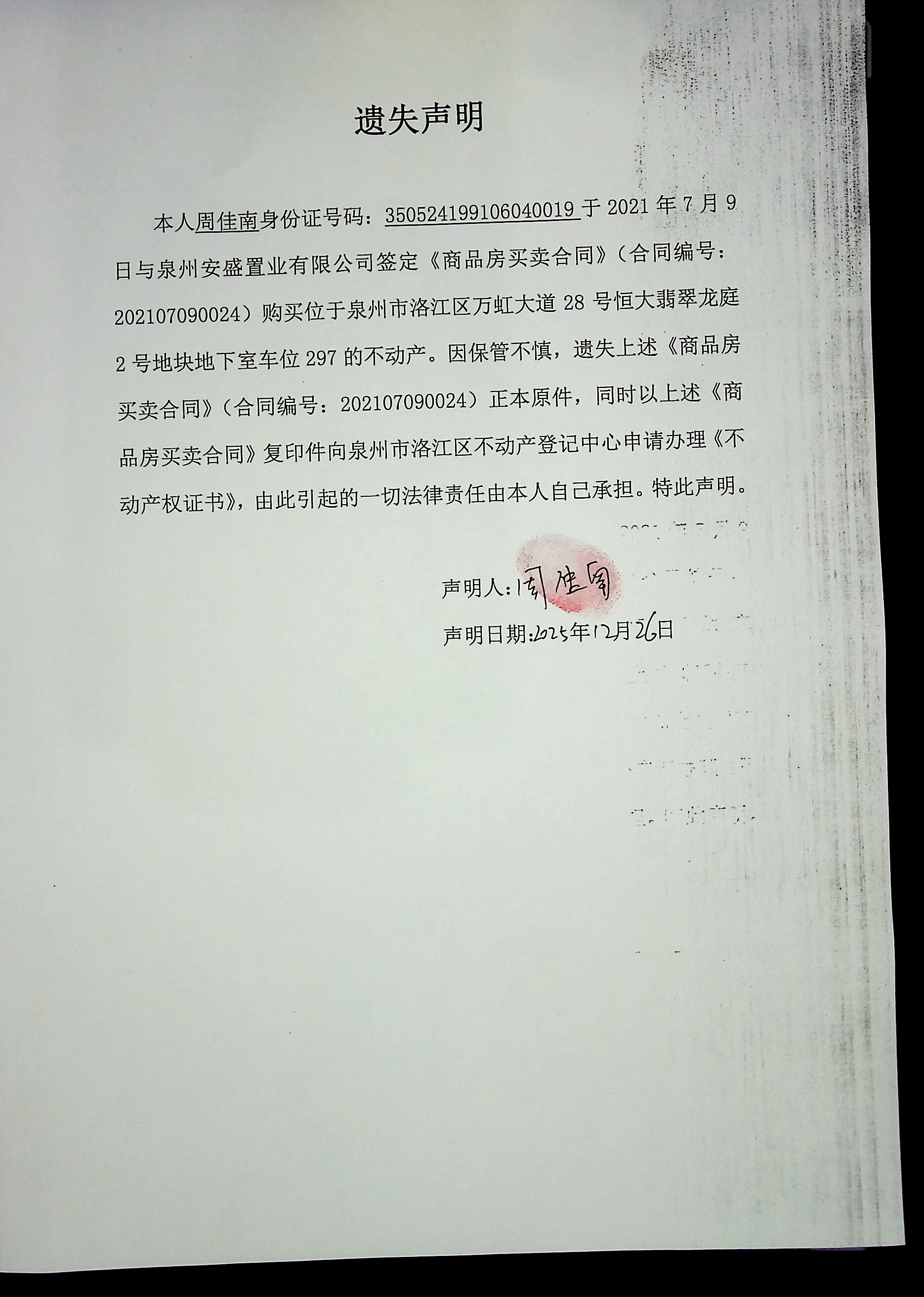 遗失声明