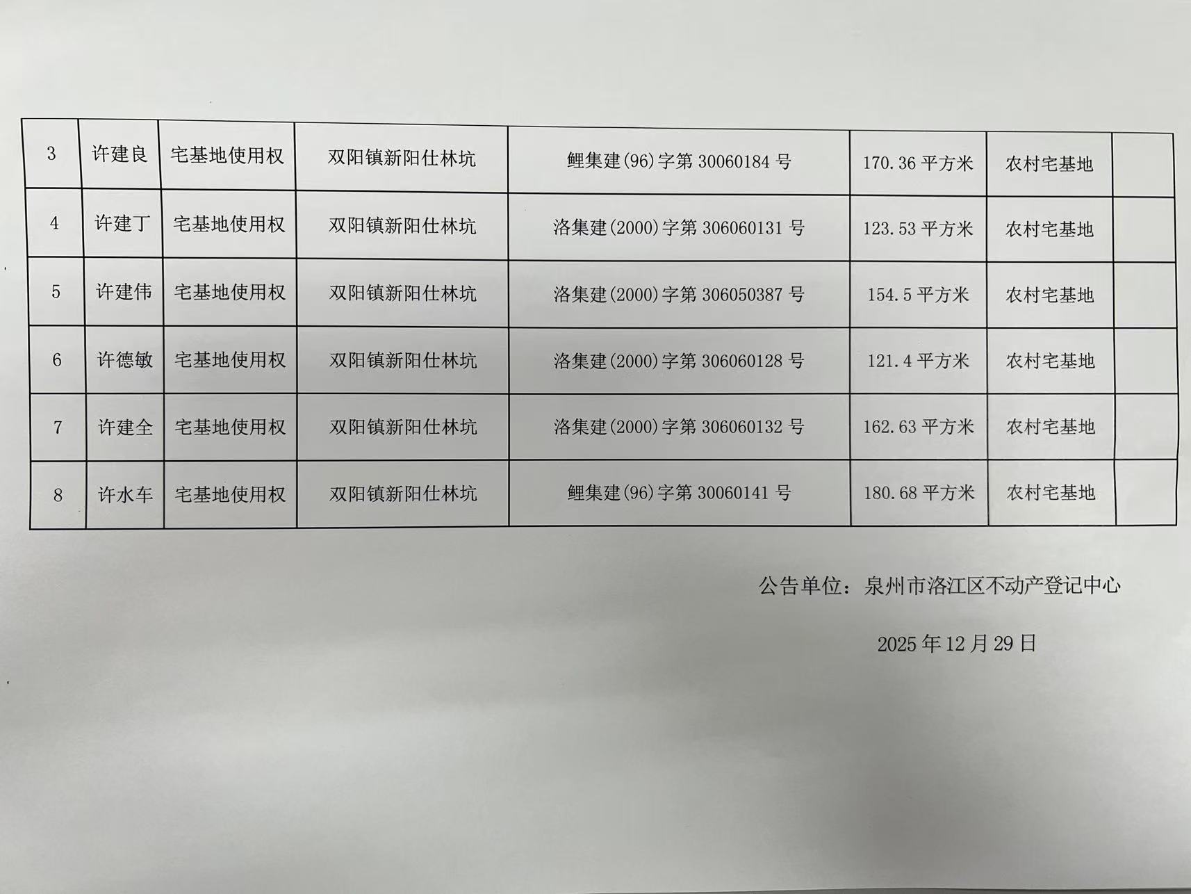 双阳街道征收范围内的集体土地建设用地使用证注销公告