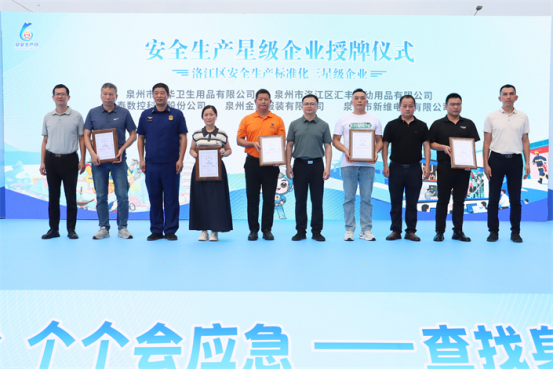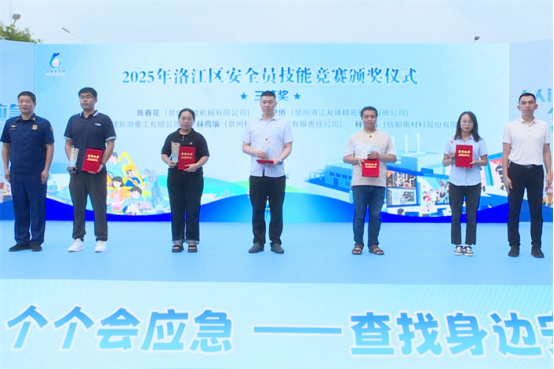 现场,涂德望等领导嘉宾共同启动2025年洛江区“安全生产月”安全宣传咨询日活动,并为洛江区安全生产标准化三星级企业授牌,为2025年洛江区安全员技能竞赛获奖选手颁奖。