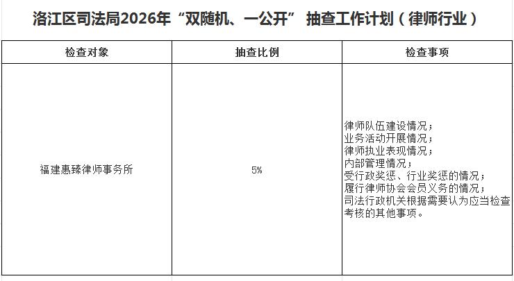 洛江区司法局2026年“双随机、一公开” 抽查工作计划(律师行业)