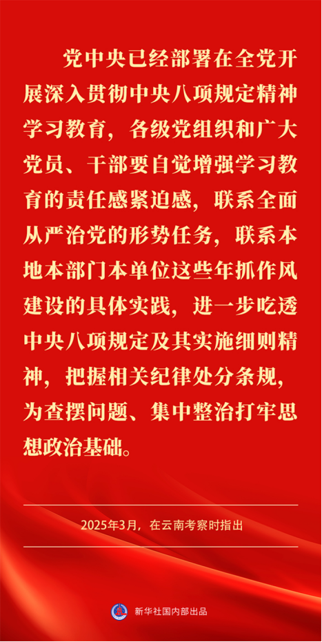 中央党的建设工作领导小组近日召开会议指出,党中央决定,自2025年全国两会后至7月在全党开展深入贯彻中央八项规定精神学习教育。