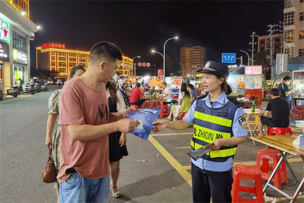 组织警力深入社区、公园、商圈等群众夜间休闲活动场所,通过发放宣传资料、现场讲解、以案释法等方式,面对面、点对点广泛开展安全宣传教育,加强安全防范提示,做实做细“心防工程”,不断提高群众守法意识和自我保护能力。
