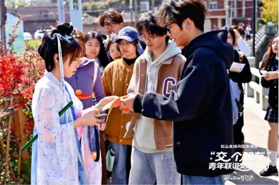 启动仪式结束后,备受瞩目的“虹山全域AI剧本游”暨“交个朋友”青年联谊活动随即开启。近800名参与者一边欣赏着虹山乡的绝美风光,一边破解剧本中的谜题,青年们在互动交流中增进了彼此的了解,在春日美景中收获友谊、共话青春,充分展现出新时代青年昂扬向上的精神风貌。