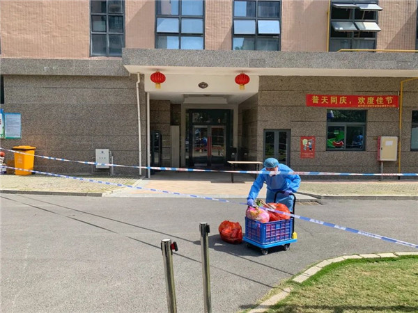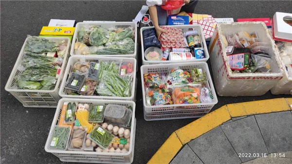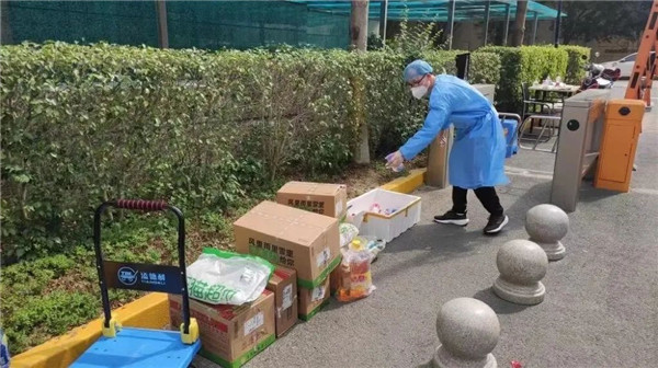 “早上这些党员志愿者和工作人员为我们配送了购买的新鲜蔬菜和肉类,很感谢他们尽心尽力关心帮助我们。现在的处境虽然不容易,但能理解也会继续克服,希望他们能注意身体,保护好自己。”隔离群众余女士表示。
