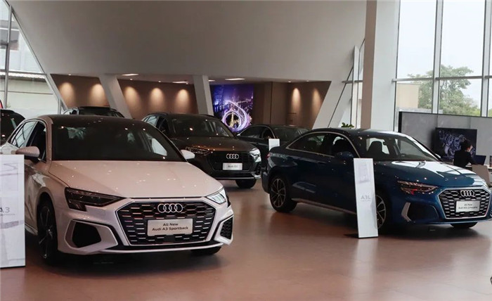 日前,在洛江华奥奥迪4S店展厅内,各种车型的汽车整齐停放,不少市民正驻足、询问,受疫情影响,汽车行业逐渐复苏。
