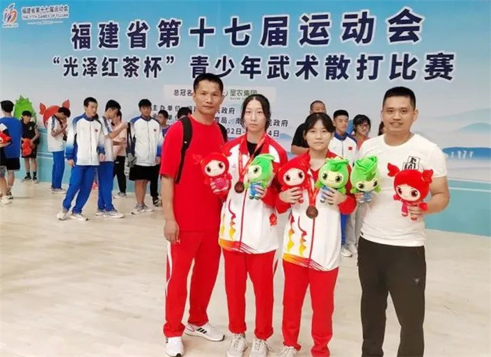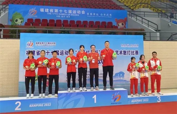8月4日,由福建省人民政府主办,福建省体育局、南平市人民政府负责承办的2022年福建省第十七届运动会青少年武术散打比赛落下帷幕。此次泉州南少林国际学校女子武术散打队7名队员代表泉州市女队参加比赛,并喜获佳绩,摘得两金两铜。