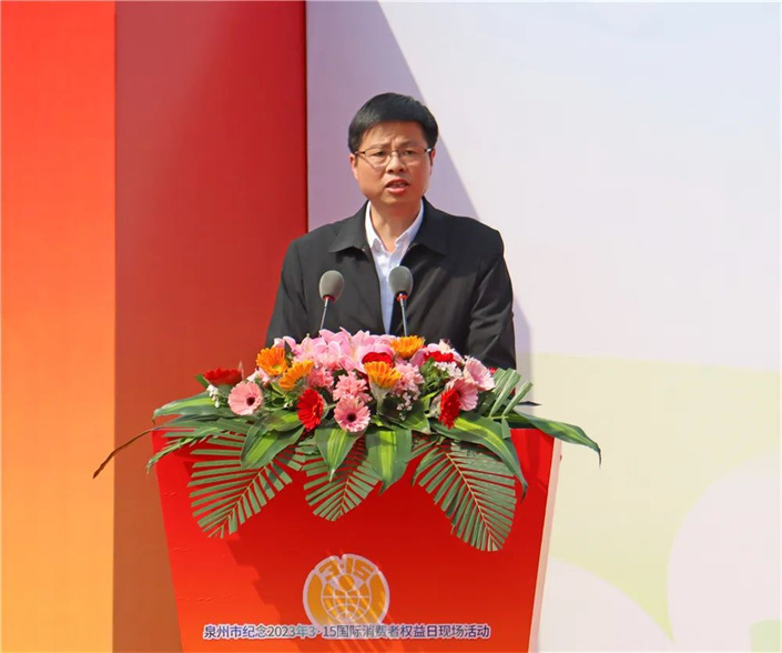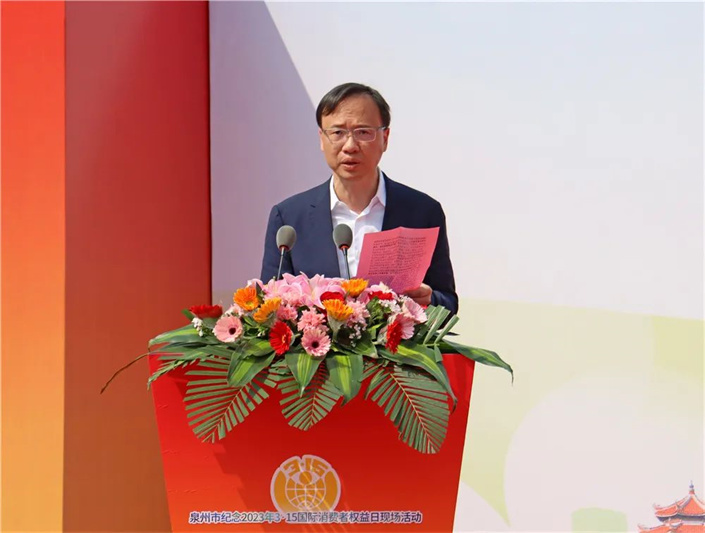 3月15日,泉州市2023年纪念“3·15国际消费者权益日”宣传活动在洛江区举办。市政府副秘书长张劲竹,市市场监管局局长李德雄,市委文明办四级调研员王婷婷,区政府副区长林联华参加。