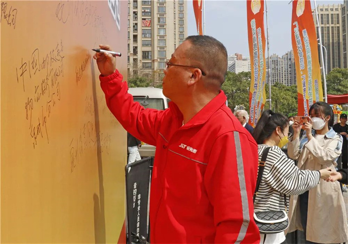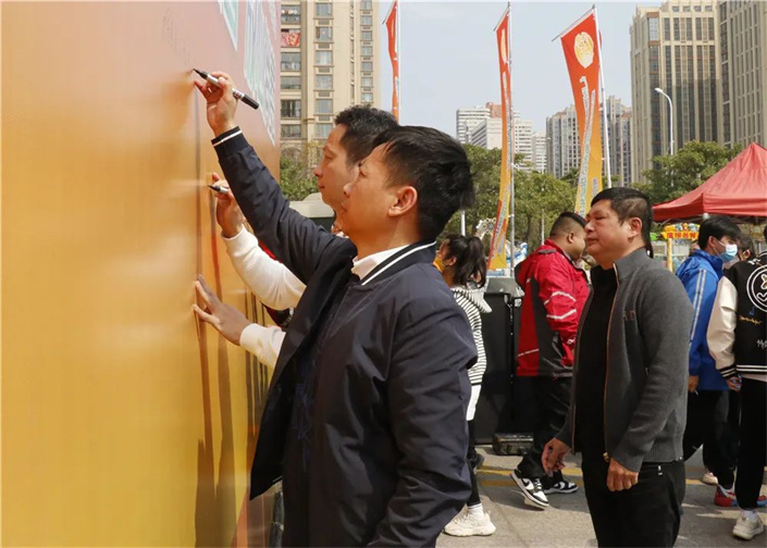 活动现场,林联华上台致辞。市建筑装饰协会、快递行业协会、电商行业协会代表分别宣读诚信经营亮诺承诺倡议书;“放心消费示范商圈”代表宣读“放心消费 我承诺”倡议书;各行业协会会员单位代表及“放心消费示范商圈”代表共同在“诚信经营 放心消费”承诺墙上签名。