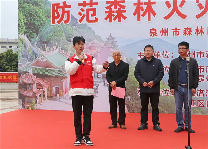 仰恩大学志愿者代表宣读森林防火倡议书,慷慨激昂的宣读声不仅带动现场人员齐声跟读,更是激发了现场人员做好森林防火工作的责任和担当。