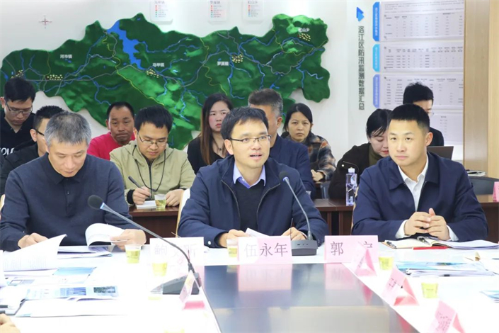 1月15日,太湖流域管理局副总工程师、水文局(信息中心)副局长伍永年带队来洛调研数字孪生流域及水利建设情况,省水利信息中心主任鲍文昕、市水利局四级调研员陈少川,区政府区长郭宁、区政府副区长王泽勇参加。