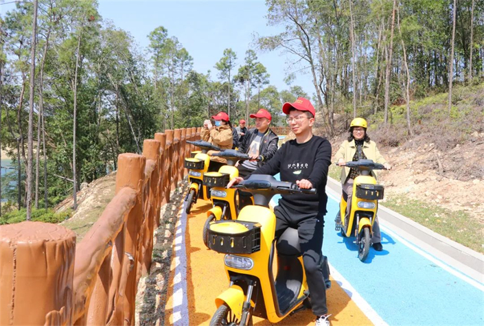 现场还举行骑行体验活动,大家从梅岭村氧生骑道骐骥驿站出发,沿途欣赏着惠女水库的美景。