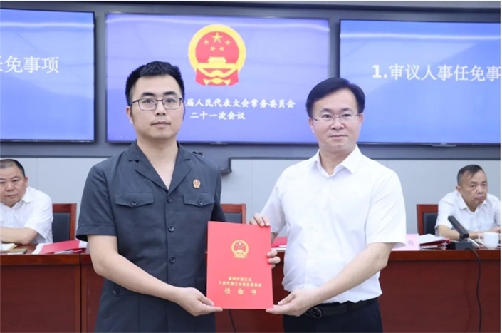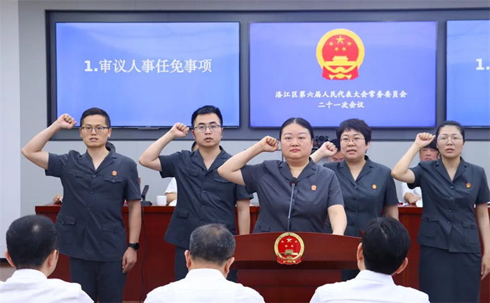 会议审议人事任命事项,表决任命孙玫芳为泉州市洛江区人民法院审判委员会委员,任命杨鑫为泉州市洛江区人民法院审判委员会委员,任命杨明钦为泉州市洛江区人民法院审判委员会委员,任命陈璇璇为泉州市洛江区人民法院行政与生态环境审判庭(综合审判庭)庭长,任命王冬梅为泉州市洛江区人民法院行政与生态环境审判庭(综合审判庭)副庭长,任命黄苹为泉州市洛江区人民法院人民陪审员,并举行宪法宣誓仪式及颁发任命书;听取和审议区政府推进精神卫生防治工作情况报告。