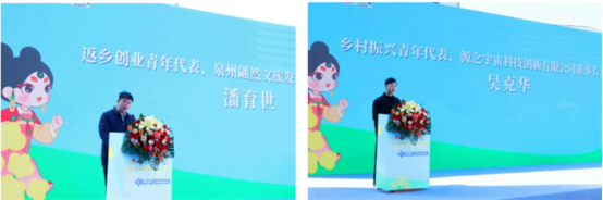 随后,返乡创业青年代表、泉州翩然文旅发展有限公司总经理潘育世,乡村振兴青年代表、源之宇宙(福建)科技创新有限公司董事长兼CEO吴克华分别上台发言,分享了返乡创业的收获和志愿服务中的感悟,鼓励更多青年投身乡村建设。