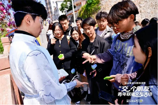 启动仪式结束后,备受瞩目的“虹山全域AI剧本游”暨“交个朋友”青年联谊活动随即开启。近800名参与者一边欣赏着虹山乡的绝美风光,一边破解剧本中的谜题,青年们在互动交流中增进了彼此的了解,在春日美景中收获友谊、共话青春,充分展现出新时代青年昂扬向上的精神风貌。