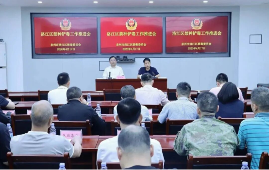 4月17日,洛江区组织收听收看全市禁种铲毒专项工作推进视频会议,并召开全区禁种铲毒专项工作推进会。区委常委、政法委书记、区禁毒委副主任张小桥,区政府副区长、公安分局局长、区禁毒委副主任王洪杰参加。