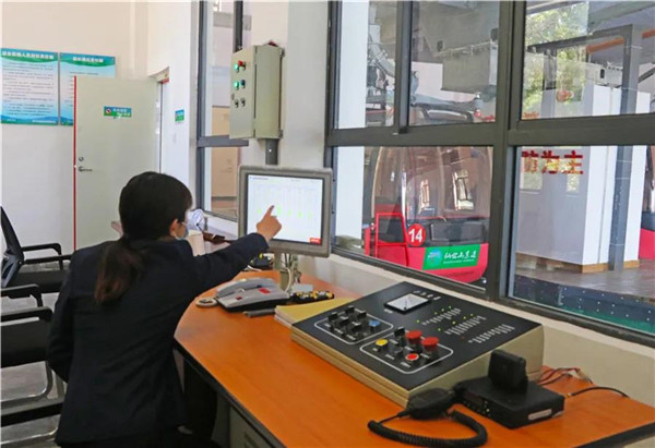 新建成的索道为循环脱挂抱索器车厢式索道,全长700米,高差192.3米,共有吊厢19个,最快运行速度可达每秒6米,2分钟即可到达主景区,每小时单向运量超1600人次,约为改造前的5倍。为保障游客体验感,日常运行速度控制在3米/秒左右,单程行驶约4分钟,可极大程度缓解景区节假日期间大客流交通压力。