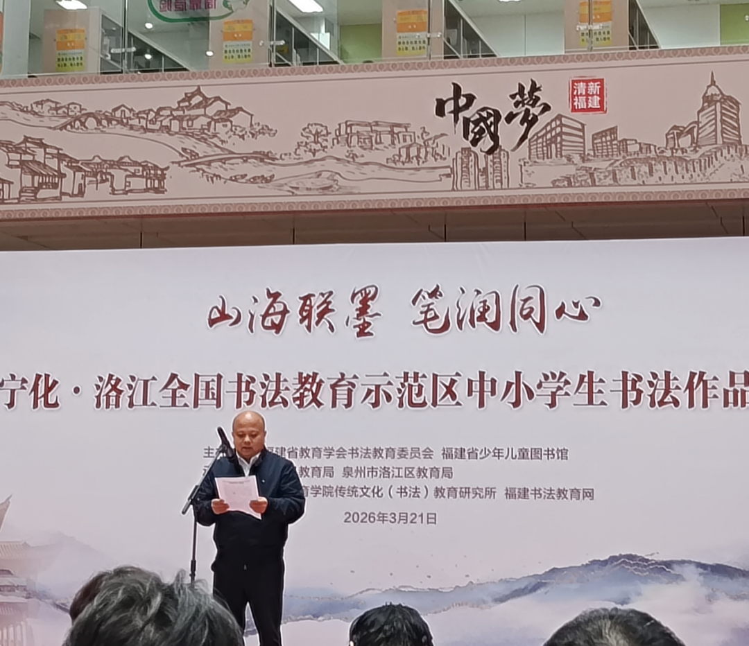 春启新程,翰墨传馨。3月21日,宁化·洛江全国书法教育示范区中小学生书法作品联展在福建省少年儿童图书馆隆重开幕。本次联展以“山海联墨 笔润同心”为主题,由福建省教育学会书法教育委员会、福建省少年儿童图书馆主办,宁化县教育局、泉州市洛江区教育局承办,展期至3月31日,为榕城市民带来一场兼具文化底蕴与少年风采的书法盛宴。